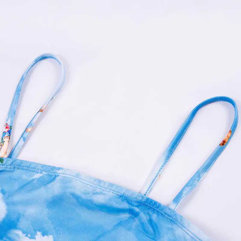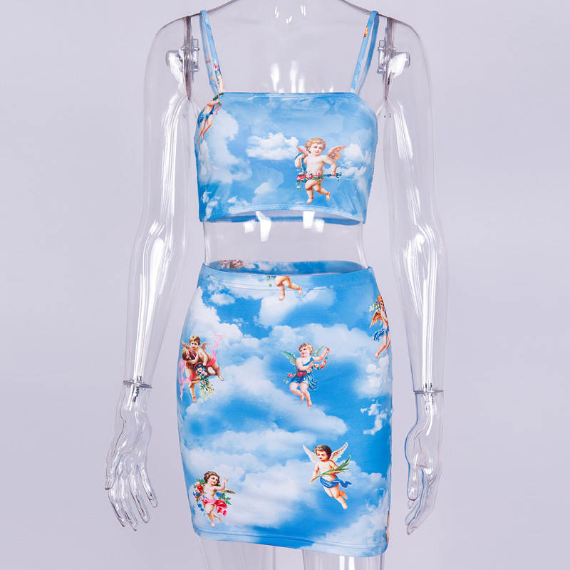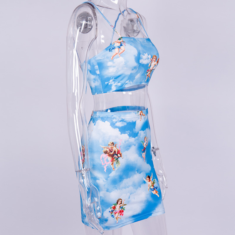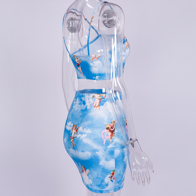 Introducing the stunning Angel Print Sling Set, a must-have addition to your wardrobe! This exquisite outfit combines the charm of European and American styles with a modern twist. Perfect for those who want to make a fashion statement while enjoying comfort and versatility.