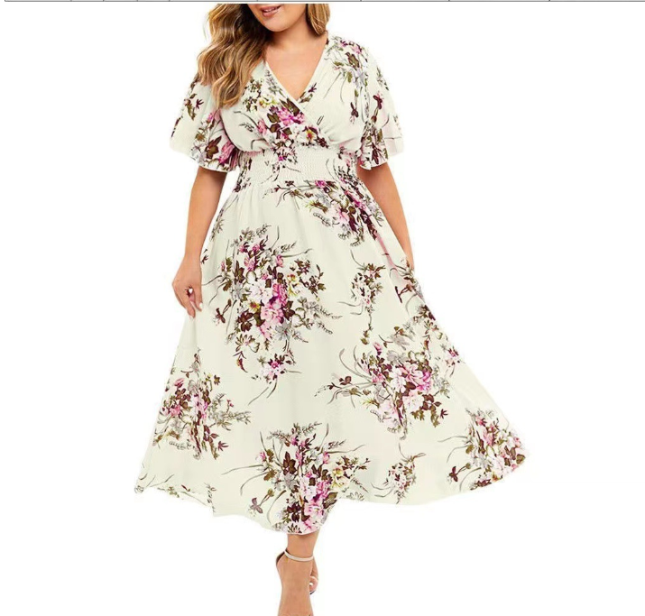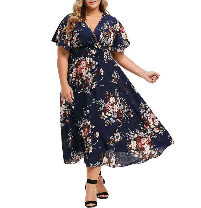 Available in three stunning colors: Blue, Pink, and Beige, this dress comes in a variety of sizes ranging from XL to 5XL, ensuring a perfect fit for every body type. Embrace your femininity and express your unique style with our exquisite floral print, designed to complement any skin tone and make you feel like the best version of yourself.